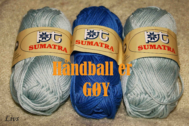Jeg har meldt meg på Håndball VM for menn- alongen, og siden det plutselig ble sydentur på oss ble det også et aldri så lite bomullsprosjekt. Jeg smyger inn tre Kopptuer, det er et helt ok arbeide på ferien. Da må det være noe jeg slipper å bruke hodet på, men allikevel noe å ta til. I morgen legger de ned butikken her vi bor - vi har i grunnen forstått det, og ventet på når det skulle skje. Vi er ikke mange nok som handler her, og handelslekkasjen har vært stor etter at vi fikk undersjøisk tunnel til den-vide-verden.